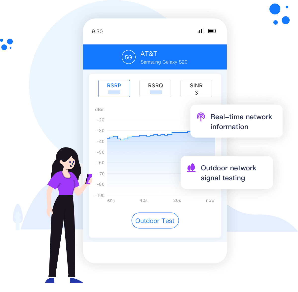 ·Test signal quality for 2G, 3G, 4G, 5G, and Wi-Fi outdoors.